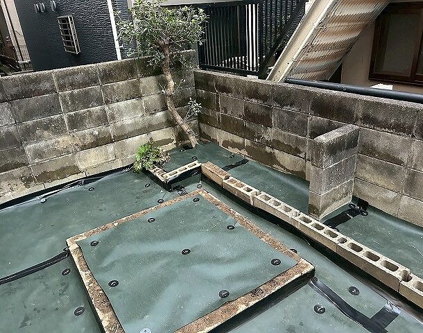 エアコン周囲をしっかり養生し、分解洗浄・高圧洗浄で内部の汚れを徹底除去。