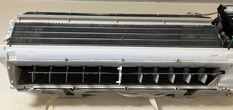 お客さまと一緒に動作確認を行ったあと電源を抜き、カバーなどの部品を分解して内部の汚れを確認しました。