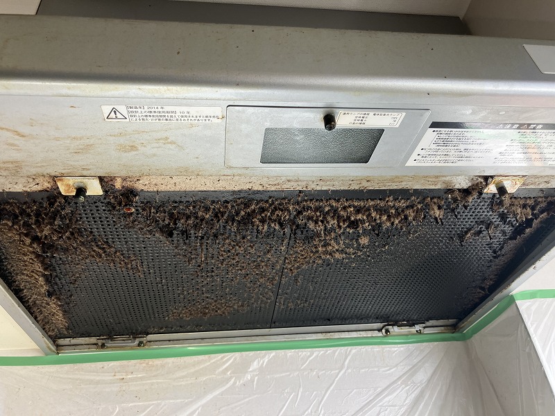 換気扇の購入から11年が経過し、油汚れが目立ち始めていたため、清掃のご依頼をいただきました。